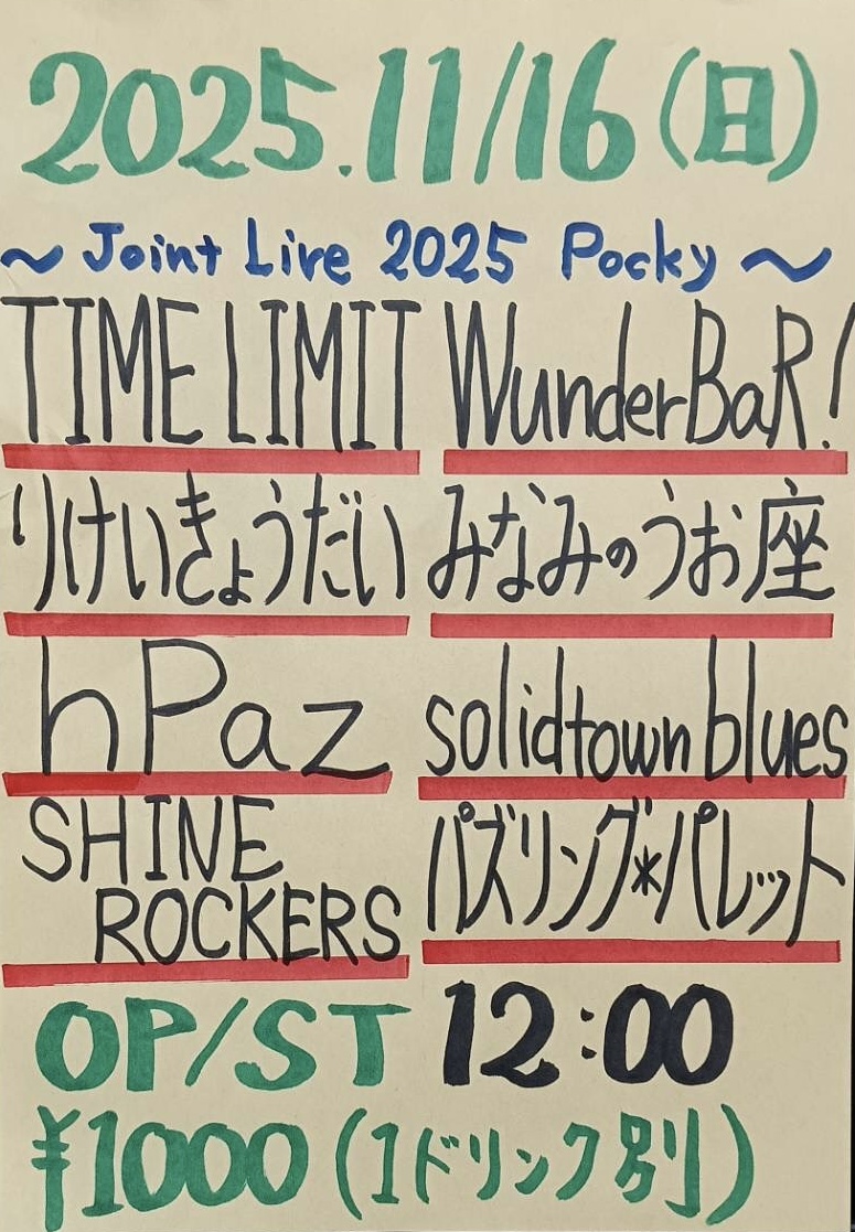 TIME LIMIT /WunderBar!/りけいきょうだい/みなみのうお座/hPaz/solidtown blues/SHINE ROCKERS/パズリング*パレット