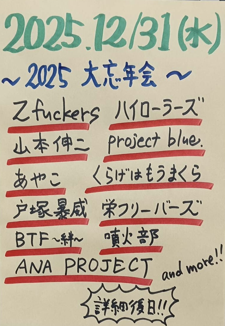 ACT:Z fuckers/ハイローラーズ/山本伸二/project blue./あやこ/くらげはもうまくら/戸塚暴威/栄フリーバーズ/BTF〜絆〜/噴火部/ANA PROJECT/...and more!!!
